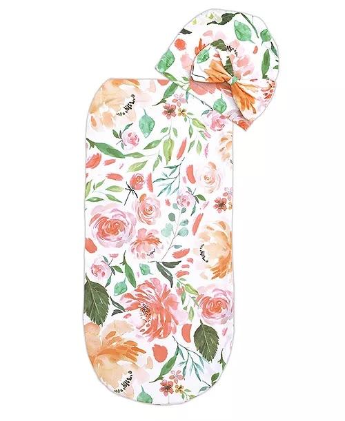 PEACH FLORAL CUTIE COCOON™ - BABY COCOON & HAT SET