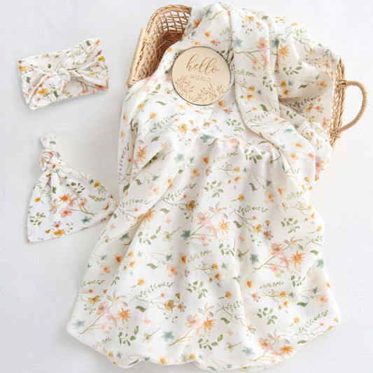 Swaddle your child in the sweet embrace of a sunset floral when you treat them to this muslin blanket. Each of these lightweight, breathable swaddling blankets are lovingly crafted to offer you and your child the most delicate and delightful swaddling experience.